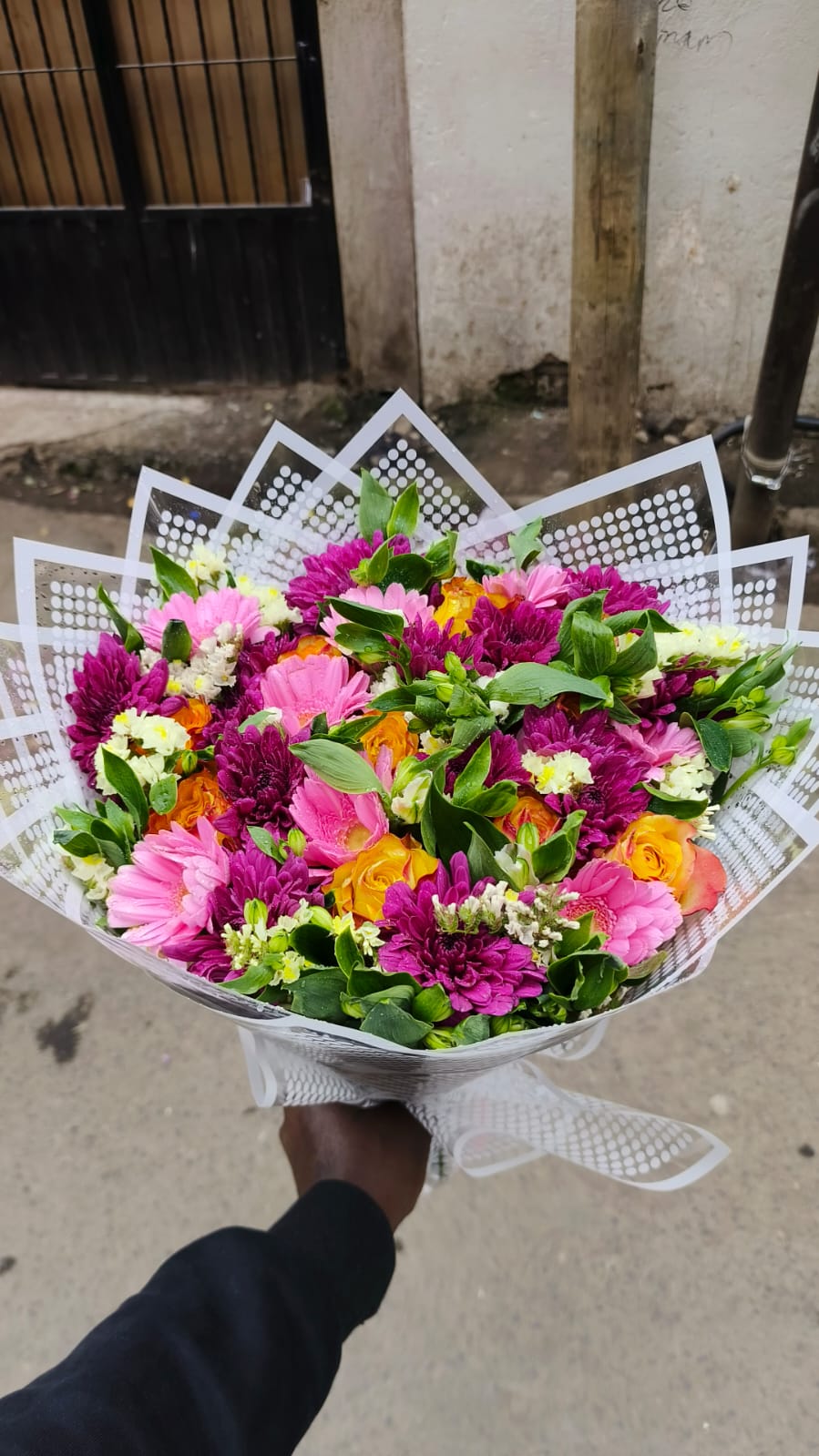Celebrate life’s most colorful moments with the Garden Radiance bouquet. Kingpin Flowers has curated a stunning mix of deep pink chrysanthemums, white blooms, and fresh lily buds that promise to unfold into a magnificent display. The variety of textures and rich tones makes this arrangement perfect for expressing joy and gratitude on birthdays or Mother’s Day. Wrapped in a distinctive gold-line white paper, this bouquet is both modern and timeless. Our expert flower delivery in Nairobi service ensures that these vibrant flowers in Kenya arrive looking as fresh as the moment they were picked.